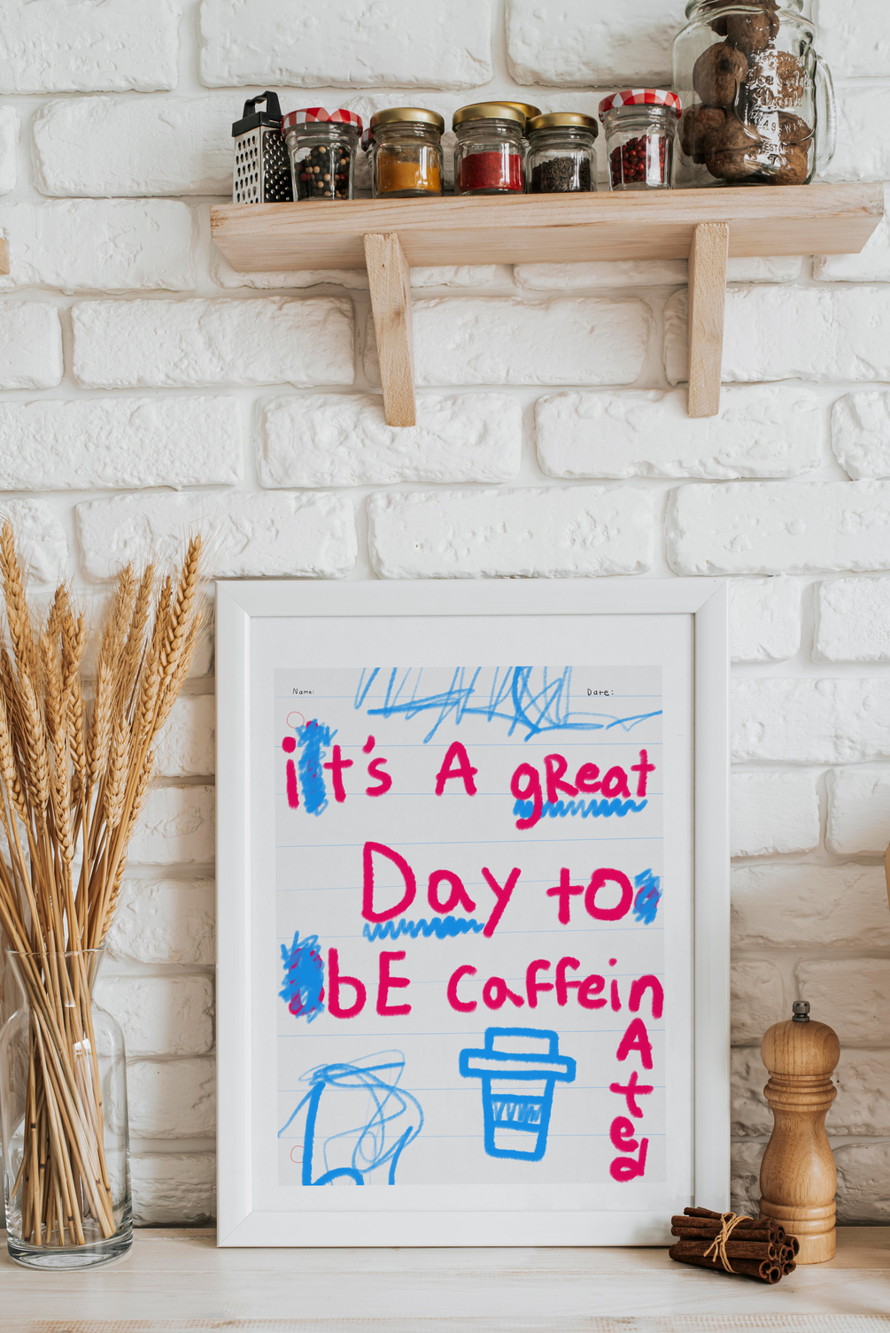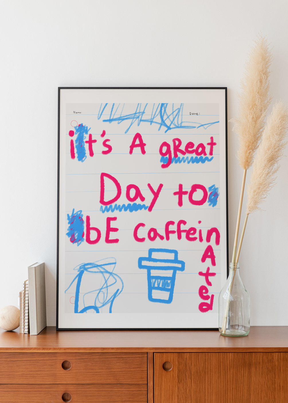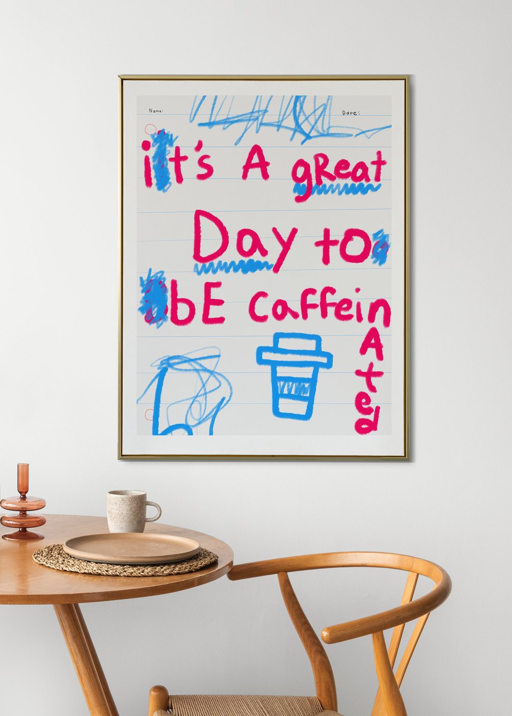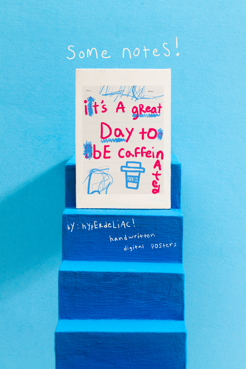 "It's A Great Day to Be Caffeinated" Quote Handwritten Printable Poster | Playfully Chaotic Crayon Note | SOME NOTES! by H!