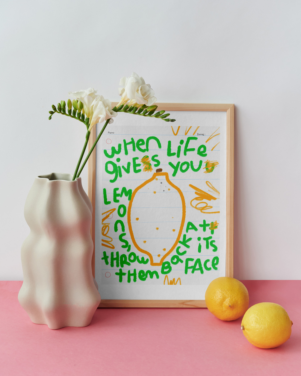 Throw those lemons! We are boycotting them! (did you know lemons aren't even a real fruit???). A funky, quirky, and chaotic digital crayon poster file for you to print on your paper and size of choosing. Makes a great housewarming gift for yourself or someone you know! Perfect for an office, bedroom, or any space needing a little crayon chaos! All notes are handwritten by me with my iPad for you to enjoy!