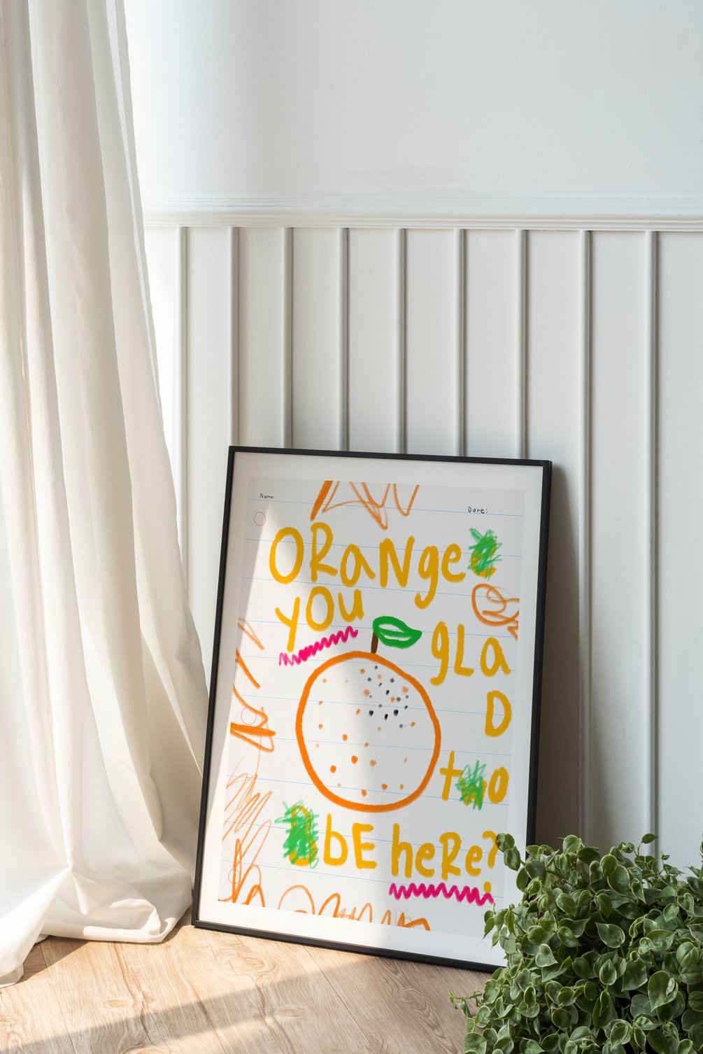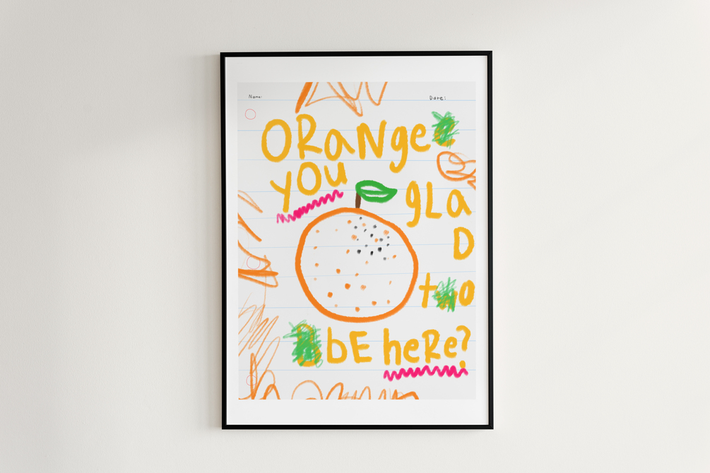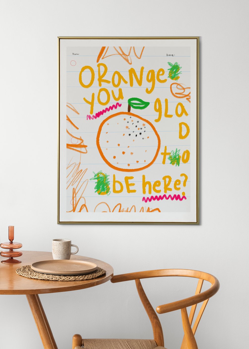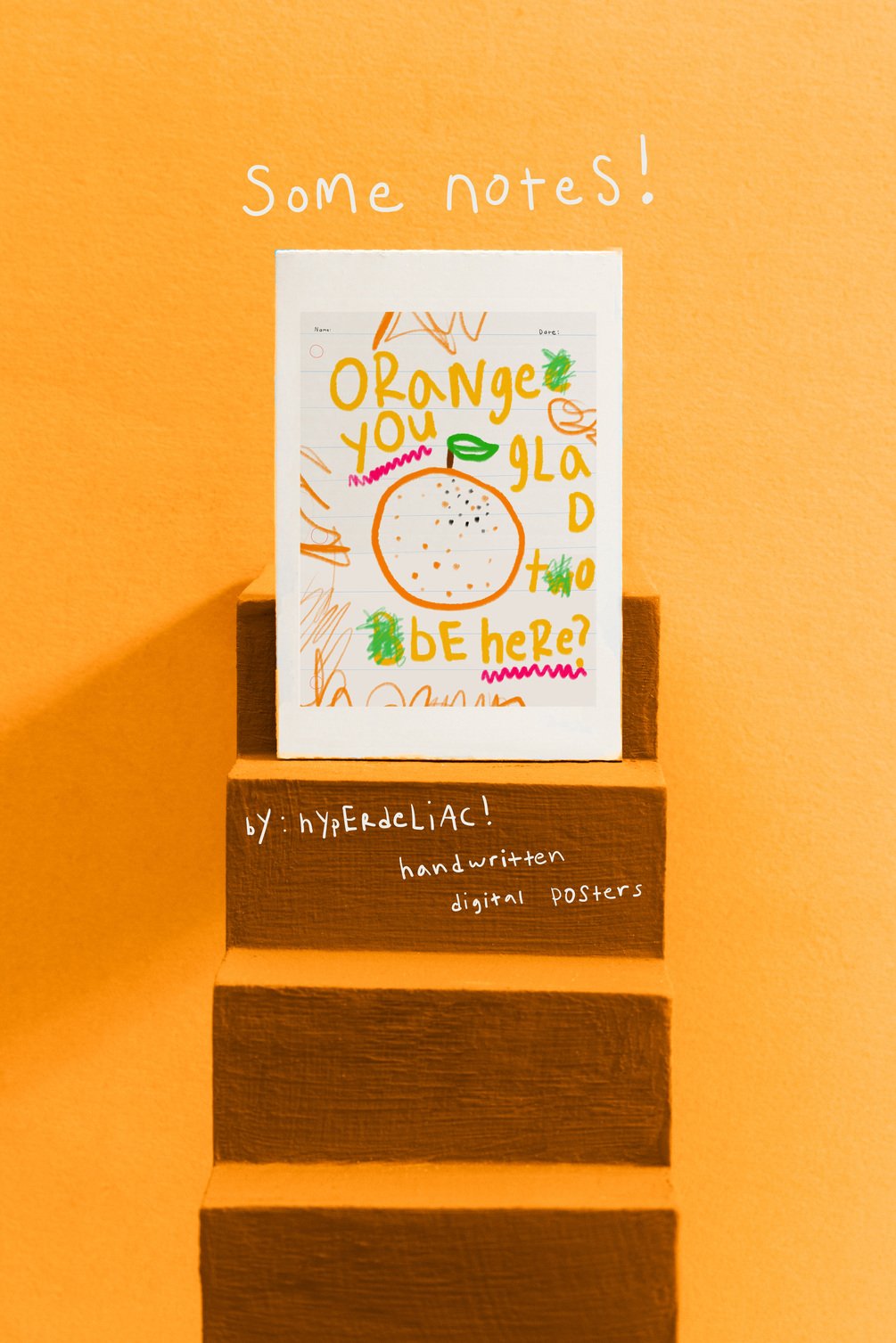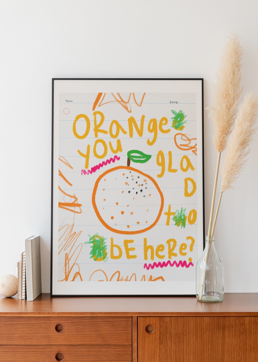 "Orange Ya Glad to Be Here" Quote Handwritten Printable Poster | Playfully Chaotic Crayon Note | SOME NOTES! by H!