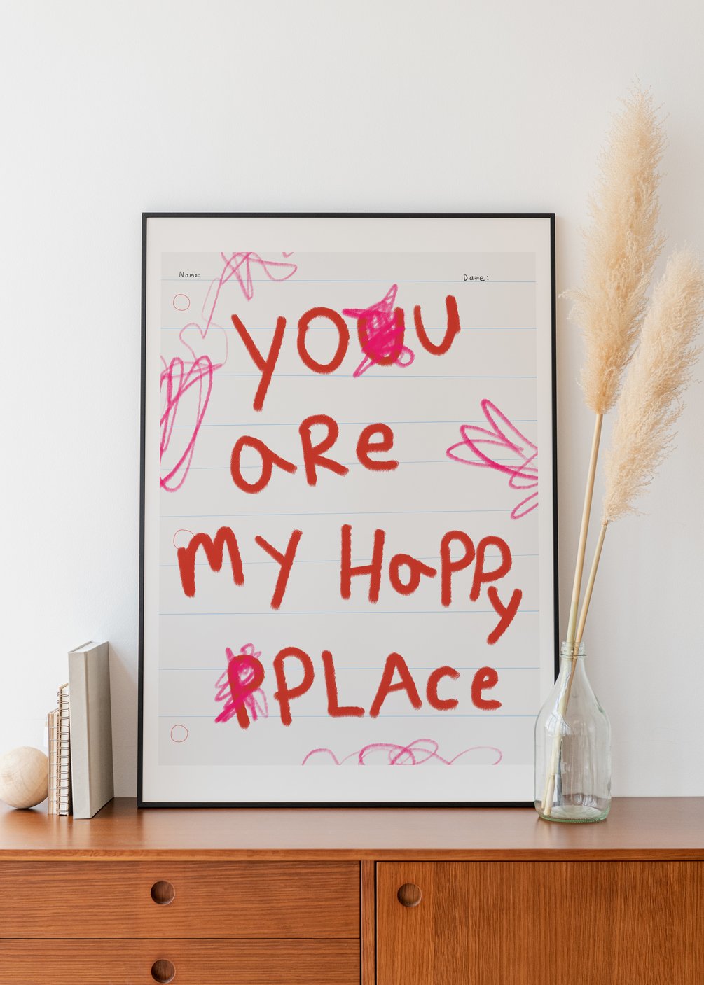 "You Are My Happy Place" Quote Handwritten Printable Poster | Playfully Chaotic Crayon Note | SOME NOTES! by H!